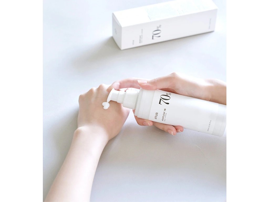 ANUA Heartleaf 70% Daily Lotion je jemné, lehké hydratační mléko s vysokým obsahem 70 % extraktu z Houttuynie (Heartleaf). Je speciálně vyvinuto pro každodenní péči o citlivou, mastnou a aknózní pleť. Tento lotion účinně zklidňuje podráždění, redukuje zarudnutí a současně posiluje přirozenou ochrannou bariéru pokožky. Pomáhá tak udržet pleť zdravou, vyváženou a bez nepříjemného pocitu mastnoty či zatížení.