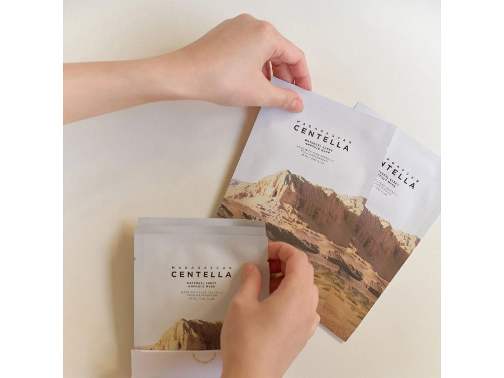 SKIN1004 Madagascar Centella Watergel Sheet Ampoule Mask je vysoce účinná hydratační maska, která cílí na zklidnění a obnovu podrážděné a citlivé pokožky. Obsahuje 51 % extraktu z Centella Asiatica, známého svými protizánětlivými, hojivými a posilujícími vlastnostmi, které pomáhají regenerovat a posilovat přirozenou kožní bariéru.
